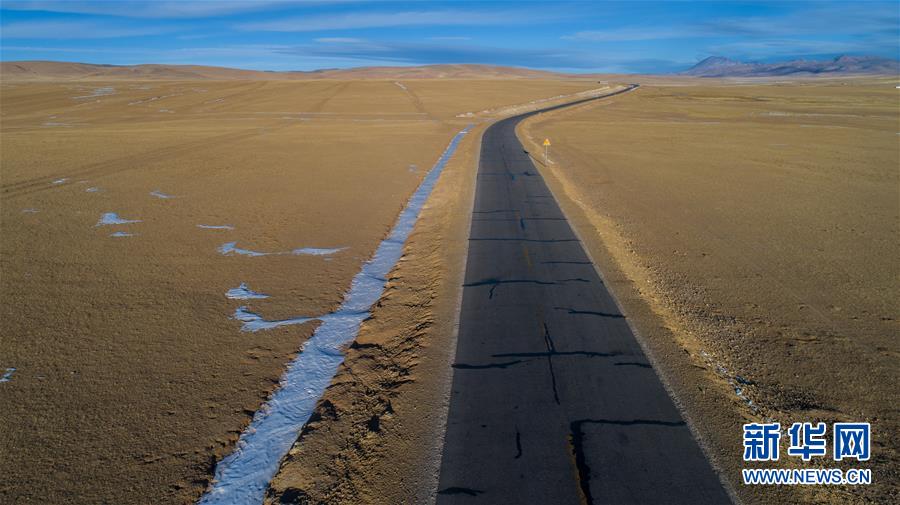 这是通往藏北双湖县的公路(1月30日无人机拍摄)。新华社记者 普布扎西 摄