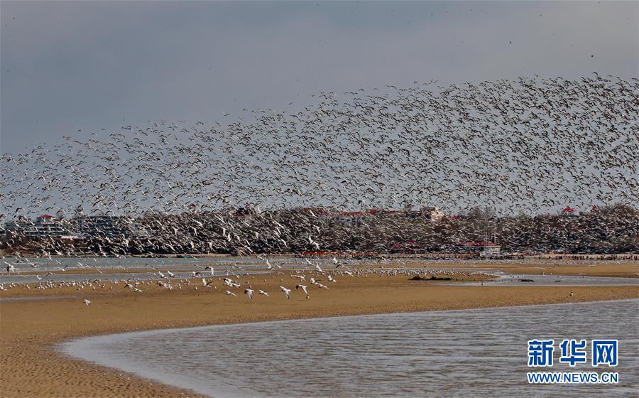 秦皇岛现“万鸟临海”景象