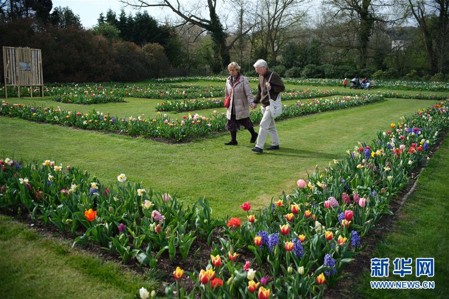 4月6日,在比利时布鲁塞尔西郊的拜加登城堡,游客观赏展出的鲜花。 为期一个月的第16届布鲁塞尔国际花展于4月6日到5月5日在布鲁塞尔拜加登城堡举行,共展出约500种、超过100万株鲜花。盛放的郁金香、水仙花、风信子等花卉与古朴的城堡一起构成了一幅美丽的画卷,吸引了大批游客前来参观。 新华社记者张铖摄