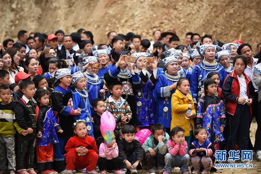 苗族群众和来宾在观看“三月三”民族歌舞表演(4月6日摄)。4月6日至7日,在贵州省黔东南苗族侗族自治州剑河县观么镇新民村和新合村,来自剑河县和三穗县的苗族同胞欢聚一堂,通过民族歌舞展演、非遗手工艺展示、千户祭“巫耶”、跳芦笙舞等形式,与来宾一起欢庆2019年高雍苗族“三月三”民俗文化节。 新华社记者 杨文斌 摄
