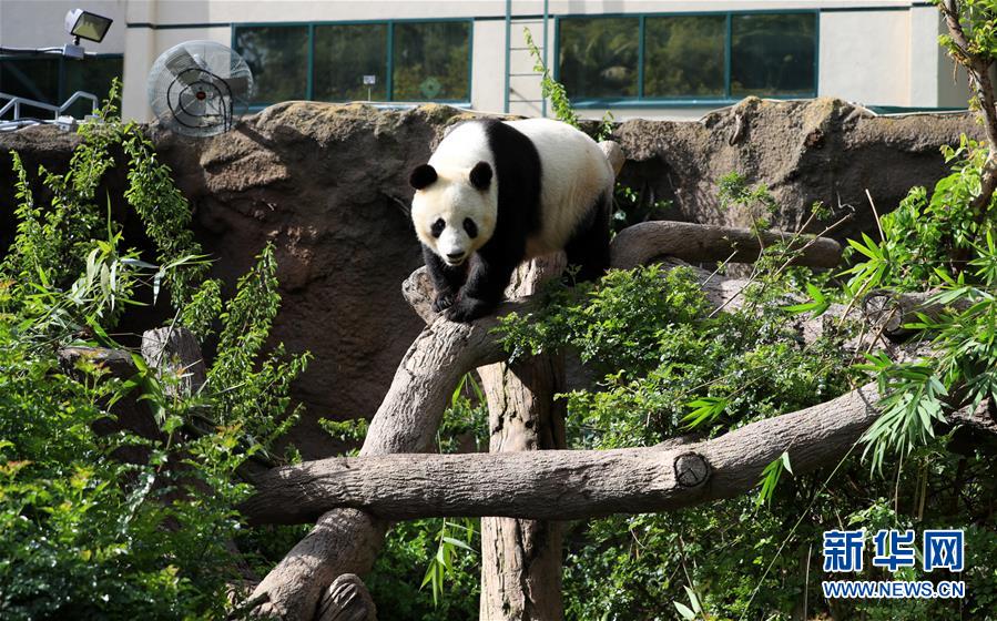 这是4月6日在美国圣迭戈动物园熊猫馆拍摄的大熊猫“白云”。新华社记者李颖摄