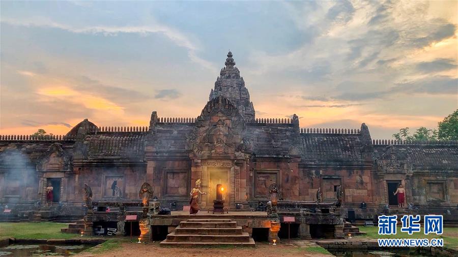 4月5日,在泰国武里南府,当地女性打扮成仙女的样子在帕侬隆寺前跳舞。 一年一度的“登帕侬隆山节”在泰国东北部毗邻柬埔寨的武里南府帕侬隆山举办。当地人以古装巡游展示独特的传统文化,希望能吸引更多外国游客、促进当地旅游业发展。 新华社记者 杨舟 摄