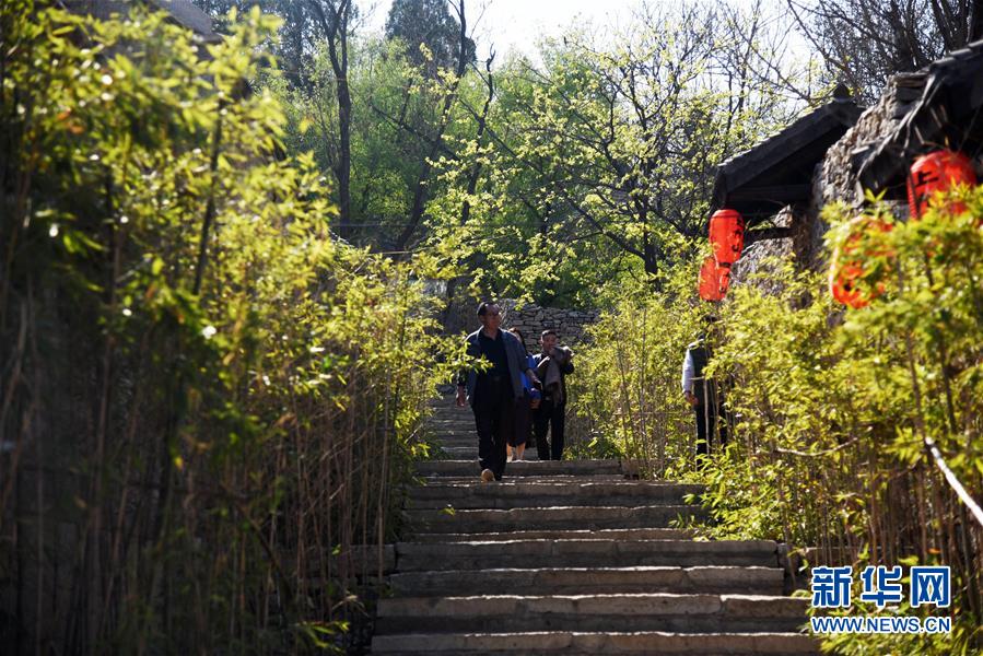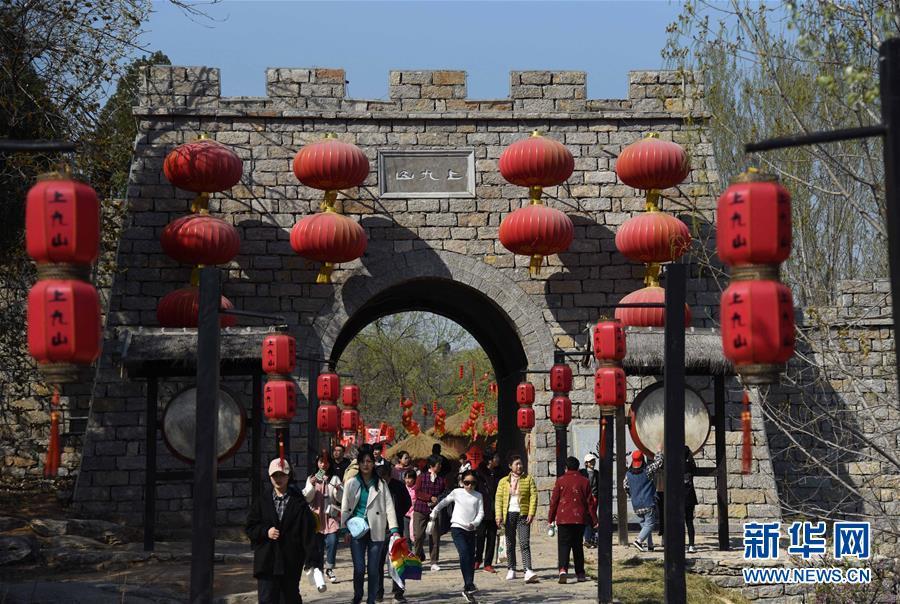 游客在山东省邹城市石墙镇上九山景区内游览(3月31日摄)。新华社记者王凯摄