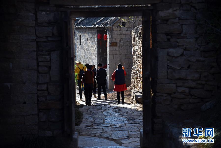 游客在山东省邹城市石墙镇上九山景区内游览(3月31日摄)。新华社记者王凯摄