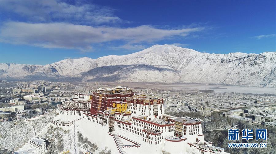 12月19日无人机拍摄的雪后的布达拉宫。 12月18日,西藏拉萨市迎来今年入冬以来的首场降雪。19日清晨,拉萨雪后初霁,处处银装素裹,尽显雪域高原之美。 新华社记者普布扎西摄