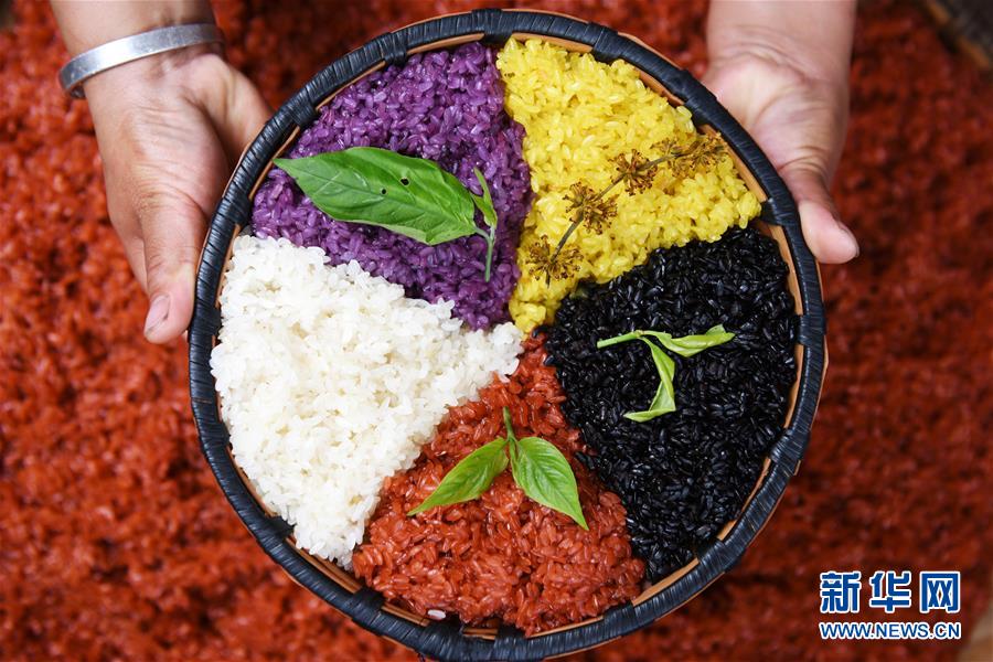每年农历三月十五前后,贵州省黔东南苗族侗族自治州台江县苗族同胞有制作“姊妹饭”、喜迎姊妹节的习俗。“姊妹饭”是使用不同植物的树叶或花朵碾压成汁液作为原色,对糯米进行浸泡并蒸熟的五彩糯米饭。姊妹节期间,青年男子可以向心仪的姑娘讨要“姊妹饭”,姑娘们则通过赠送藏有不同物品的“姊妹饭”传情达意。