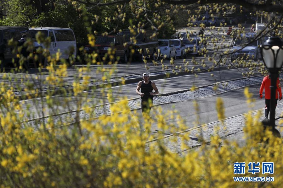 4月16日,一名男子在美国纽约中央公园跑步。 新华社记者 王迎 摄