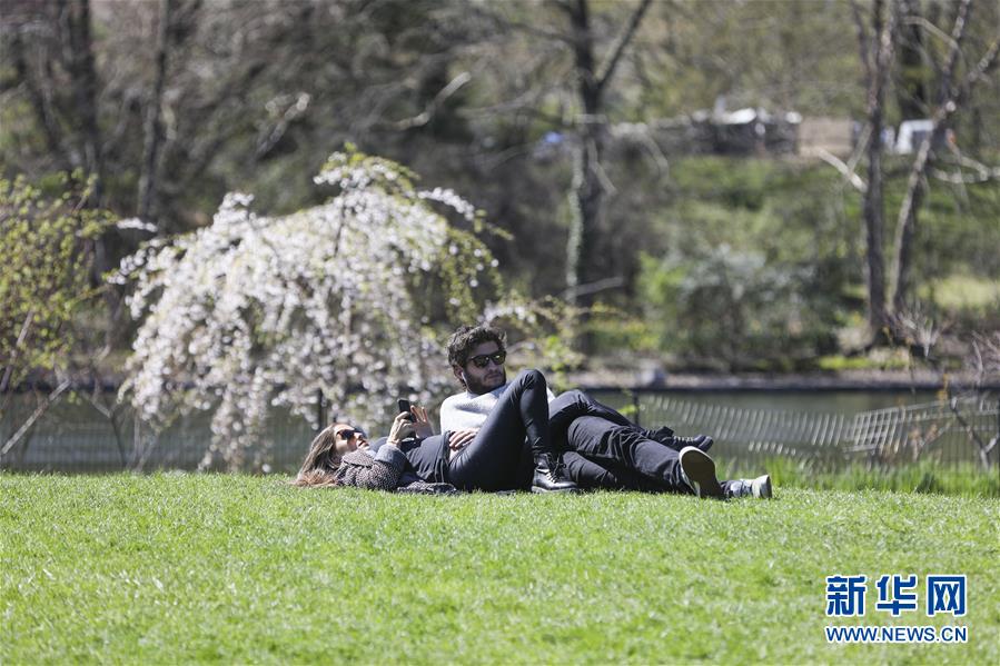 4月16日,人们在美国纽约中央公园享受春光。 新华社记者 王迎 摄