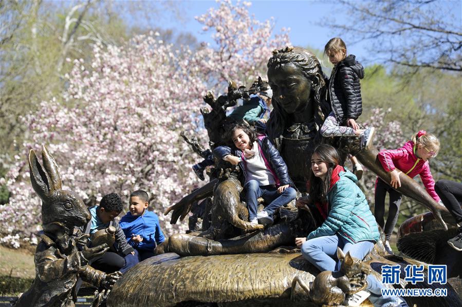 4月16日,孩子们在美国纽约中央公园游玩。 新华社记者 王迎 摄