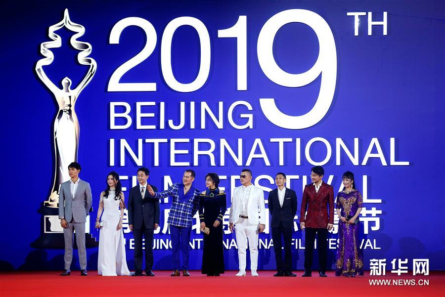 4月20日,电影《变色龙之绝杀》剧组成员亮相闭幕红毯。 当日,第九届北京国际电影节在北京怀柔国家中影数字制作基地闭幕。 新华社记者 沈伯韩 摄