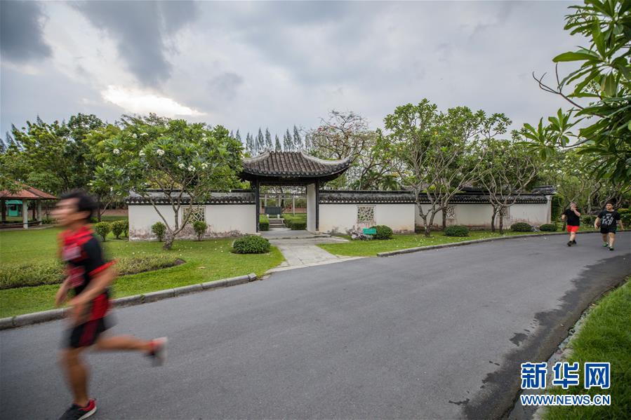 2019年4月3日,锻炼身体的民众经过泰国曼谷九世王御园内的中式园林“智乐园”。这座园林是1988年中国政府赠送给泰国九世王普密蓬的60岁寿辰礼物,“智乐园”之名取自论语“仁者乐山,智者乐水”。 新华社记者张可任摄