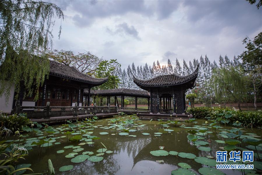 这是2019年4月3日在泰国曼谷九世王御园内拍摄的中式园林“智乐园”。这座园林是1988年中国政府赠送给泰国九世王普密蓬的60岁寿辰礼物,“智乐园”之名取自论语“仁者乐山,智者乐水”。 新华社记者张可任摄