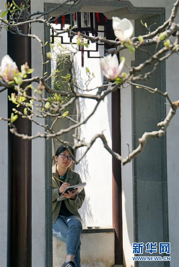 2019年4月1日,游客在中国苏州网师园内写生。1997年,网师园和拙政园、留园、环秀山庄被列入联合国教科文组织世界文化遗产名单。 新华社记者杜涓涓摄