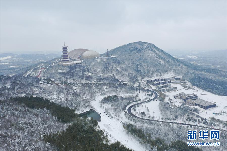 这是2月8日无人机拍摄的南京牛首山文化旅游区雪景。 新华社记者 季春鹏 摄
