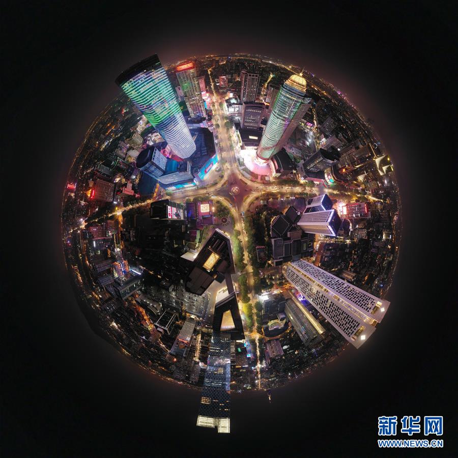 这是4月17日无人机拍摄的南京新街口夜景全景图。 新华社记者 李博 摄