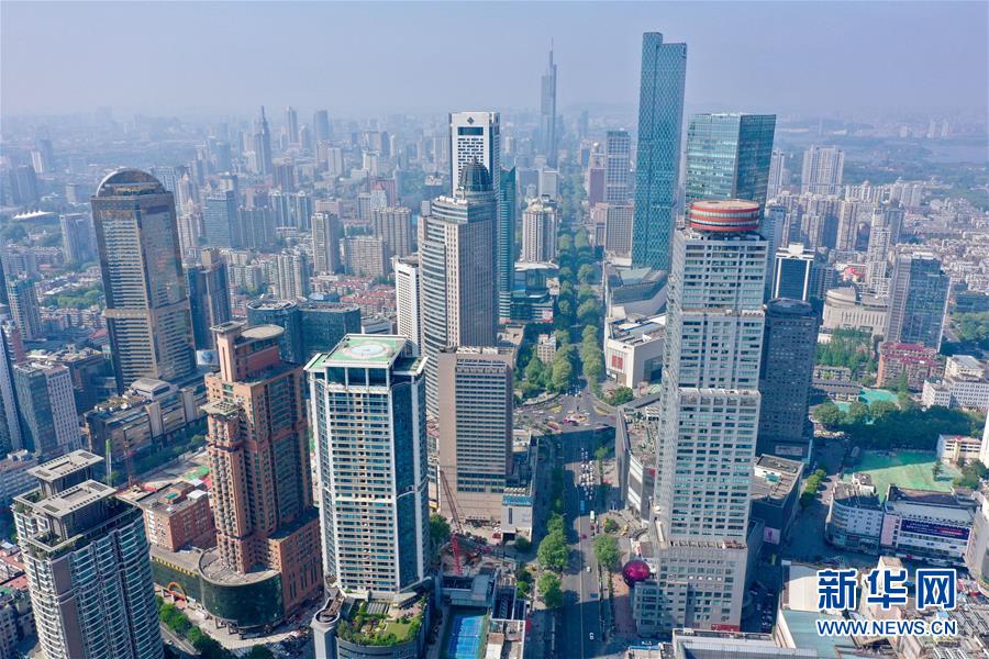 这是4月19日无人机拍摄的南京新街口。 新华社记者 李博 摄