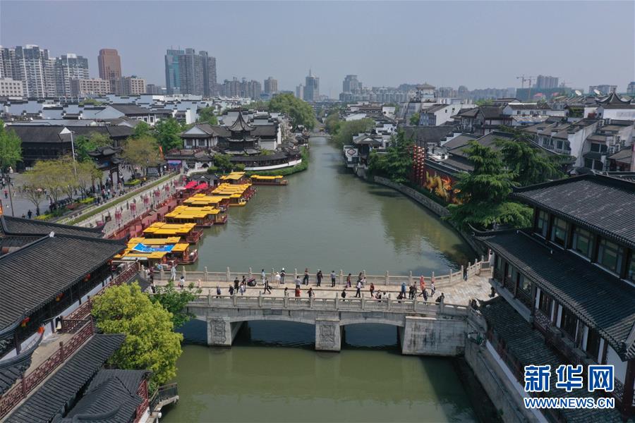这是4月17日无人机拍摄的南京夫子庙景区。 新华社记者 李博 摄