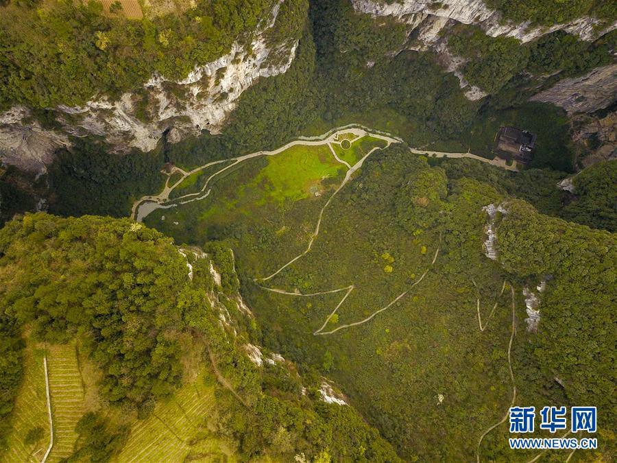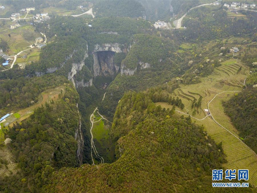 这是在天生三桥景区拍摄的神鹰天坑景观(3月27日摄)。 随着天气转暖,重庆武隆天生三桥景区风景如画,气势磅礴的天生石桥和绿意盎然的山林相映成趣,吸引众多游客前来踏春赏景。 新华社记者刘潺摄