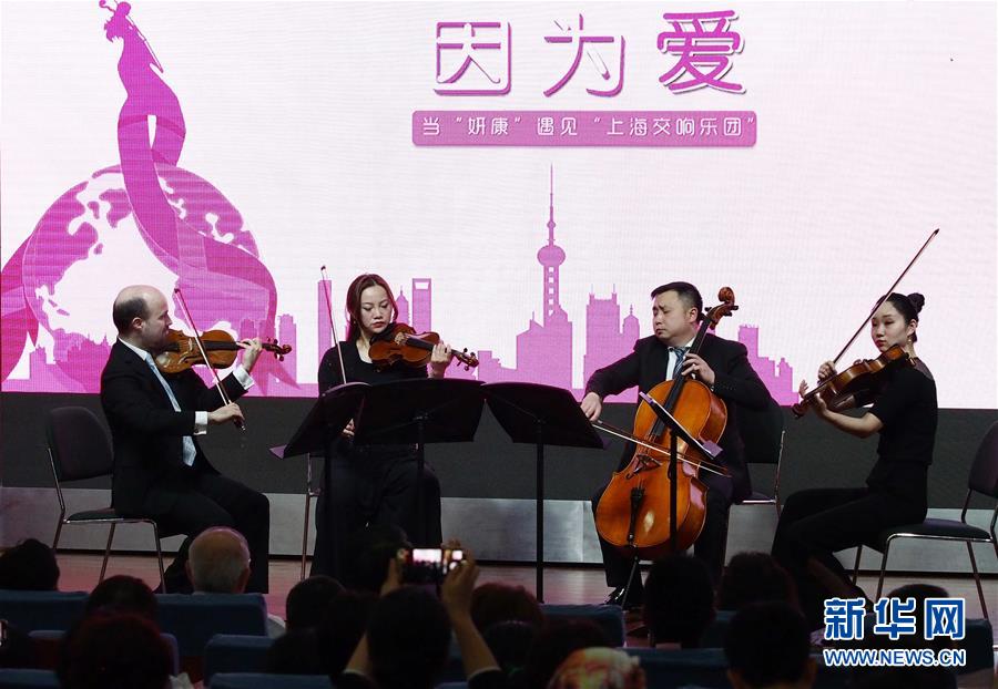 4月25日,上海交响乐团的艺术家在复旦大学附属肿瘤医院为患者和医护人员演奏。 当日,第一场“全城交响·上交为你而来”音乐会在复旦大学附属肿瘤医院报告厅奏响,为患者及医护人员献上一场专属音乐会。“全城交响·上交为你而来”是上海交响乐团2019年向全上海的机构及个人开放的公益演出项目。 新华社记者 任珑 摄