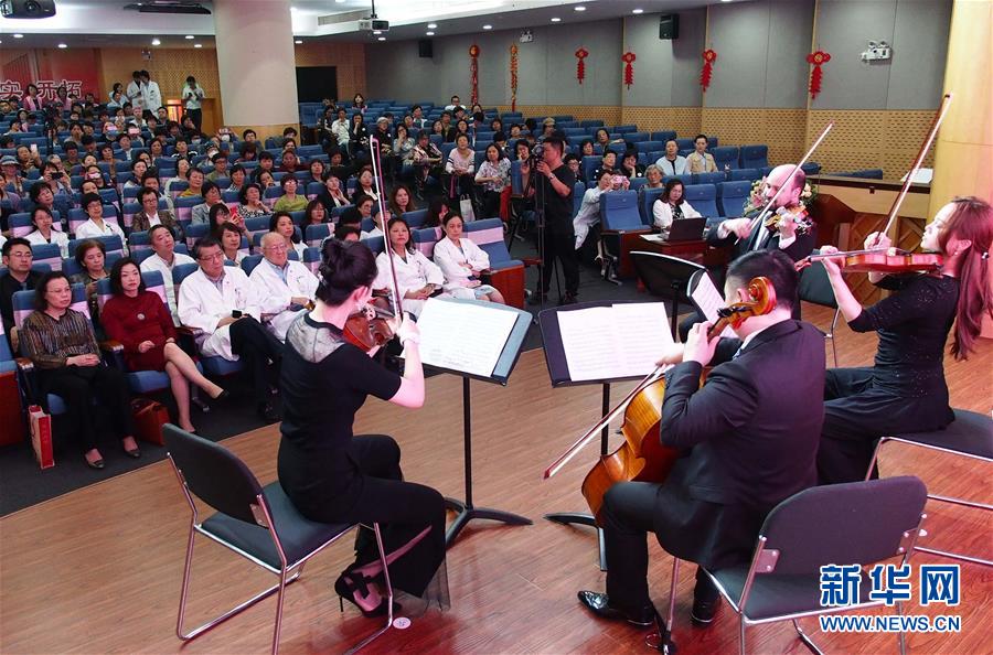 4月25日,上海交响乐团的艺术家在复旦大学附属肿瘤医院为患者和医护人员演奏。 当日,第一场“全城交响·上交为你而来”音乐会在复旦大学附属肿瘤医院报告厅奏响,为患者及医护人员献上一场专属音乐会。“全城交响·上交为你而来”是上海交响乐团2019年向全上海的机构及个人开放的公益演出项目。 新华社记者 任珑 摄