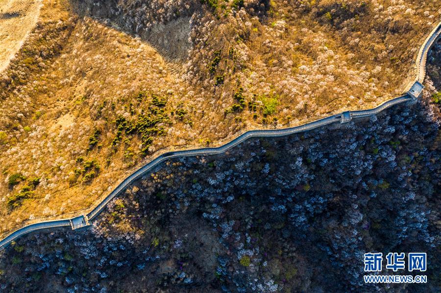 这是北京慕田峪长城(4月10日无人机拍摄)。 新华社记者 王建华 摄