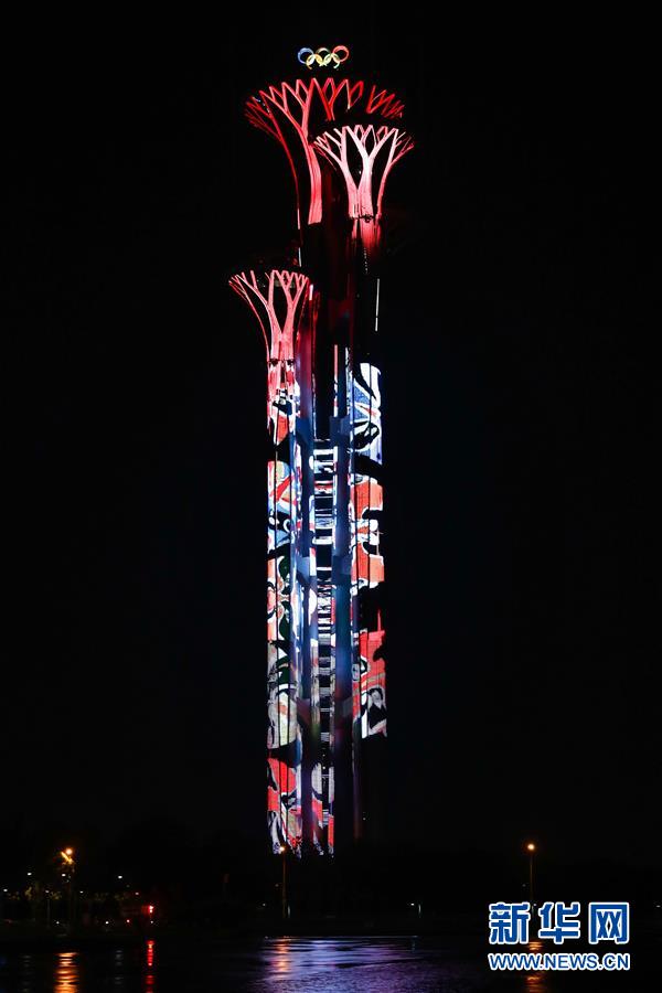 4月26日,北京中轴线上演“空间光影秀”。 新华社记者 张玉薇 摄