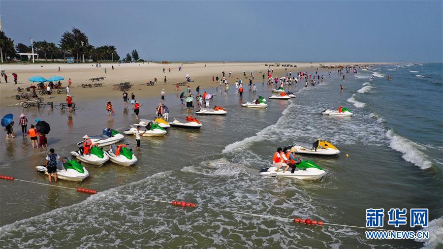 这是游客在北海银滩游玩(4月18日无人机拍摄)。 北部湾畔南端的江山半岛,76公里海岸线上,昔日沿岸渔村如今“长”出20多个景区。每逢节假日,四面八方的游客将这里堆得人山人海。 近年来,北部湾国际旅游度假区正成为广西旅游业的一颗耀眼明珠。在绿色之海、开放之海理念的指导下,发展的东风掀开这片南疆海域 “面纱”,昔日渔港正变为滨海旅游胜地。 新华社记者张爱林摄