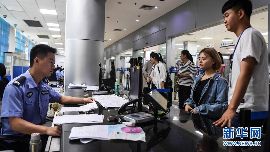 这是游客在东兴市政务中心大厅办理出入境手续(4月16日摄)。新华社记者张爱林摄