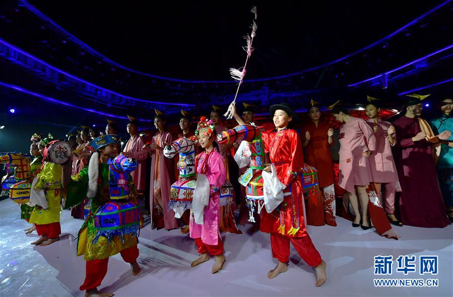 4月27日,表演结束后,模特在向观众致意。 当日,土楼光语国际时尚大秀在福建省南靖县的土楼裕昌楼内举行。这场融汇文化、时尚与旅游元素的大秀,通过传统与时尚的有机融合,展现南靖土楼及文化的魅力和风采。 新华社记者魏培全摄