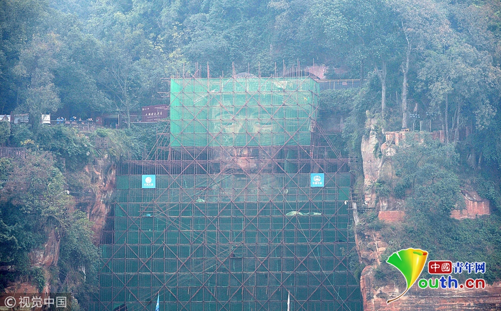 乐山大佛本体已全遮蔽 胸腹开裂病害原因基本查明