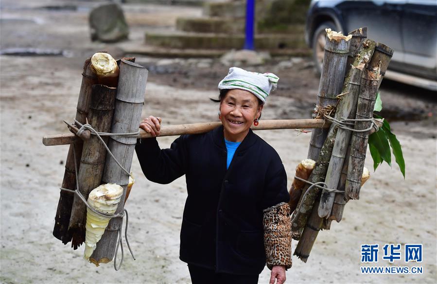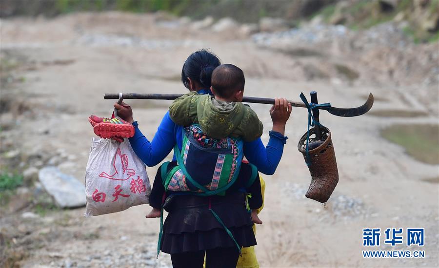 在黔桂乌英苗寨,村民劳作归来(3月18日摄)。 新华社记者 黄孝邦 摄