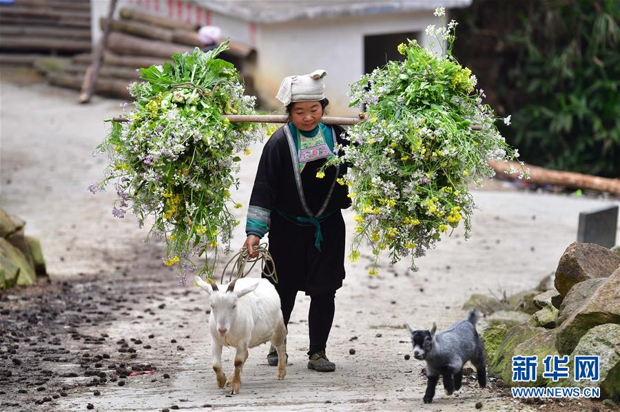在黔桂乌英苗寨,村民劳作归来(3月25日摄)。 新华社记者 黄孝邦 摄
