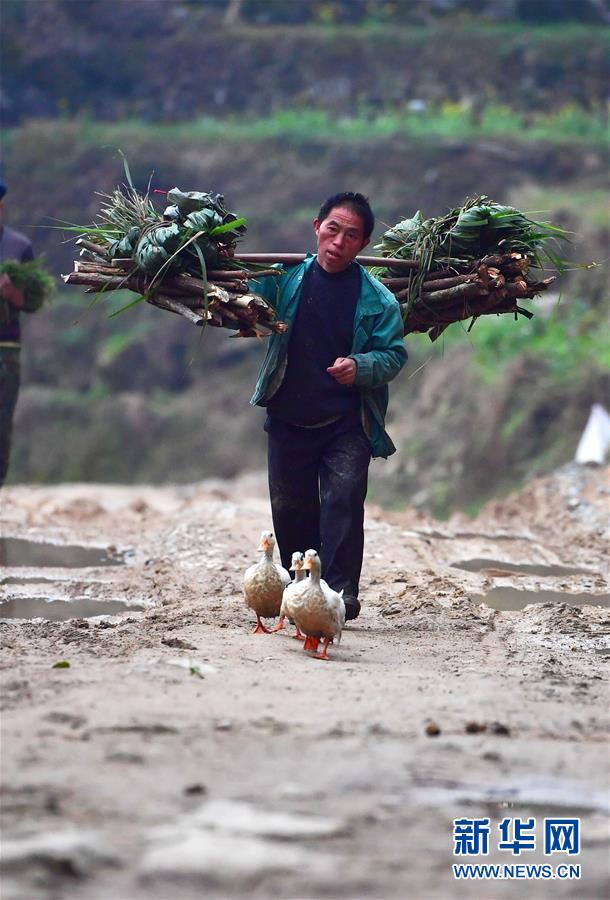 在黔桂乌英苗寨,村民劳作归来(3月18日摄)。 新华社记者 黄孝邦 摄