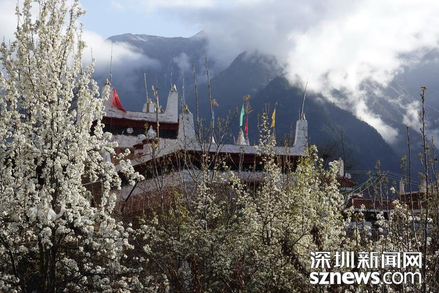 “甲居”,藏语是百户人家之意。甲居藏寨距丹巴县城约8公里,从大金川河谷层层向上攀缘,一直伸延到卡帕玛群峰脚下。在相对高差近千米的山坡上,一幢幢藏式楼房和碉楼洒落在绿树鲜花丛中,将田园牧歌式的风光展示在人们眼前。李仁奇摄