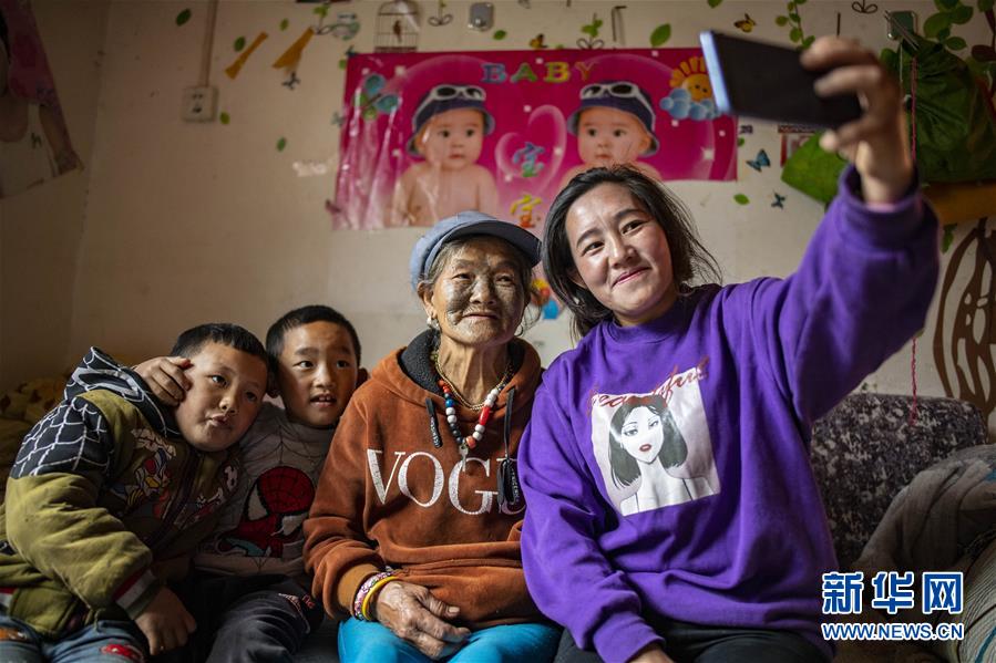 75岁的“文面女”李文仕(右二)在与孩子们自拍(4月21日摄)。 70年,在人类历史长河中不过弹指一瞬。但对独龙族同胞来说,新中国的70年,他们仿佛进入了时空穿梭隧道,沧桑巨变,千古未有。 他们告别苦难,迎来阳光。他们告别封闭,走向开放。他们告别原始落后,拥抱现代文明。最近,他们宣告整族脱贫,实现“千年一跃”。 新华社记者 江文耀 摄