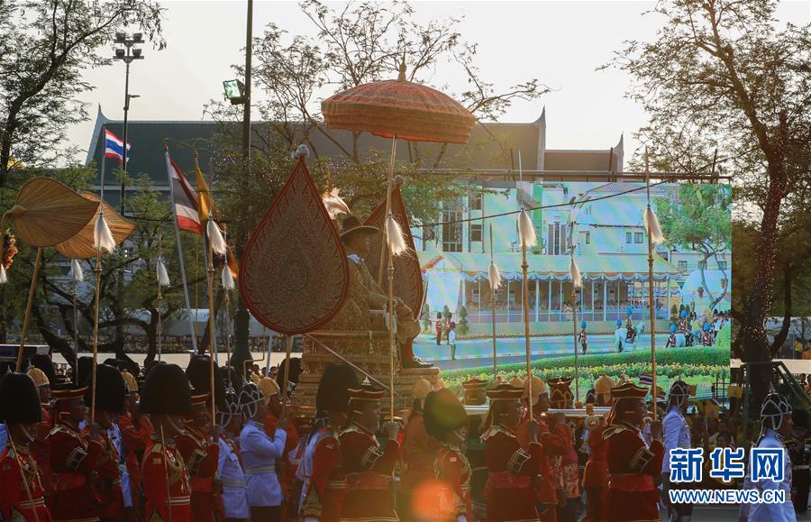 5月5日,泰国国王玛哈·哇集拉隆功参加加冕典礼巡游。 新华社记者 张可任 摄
