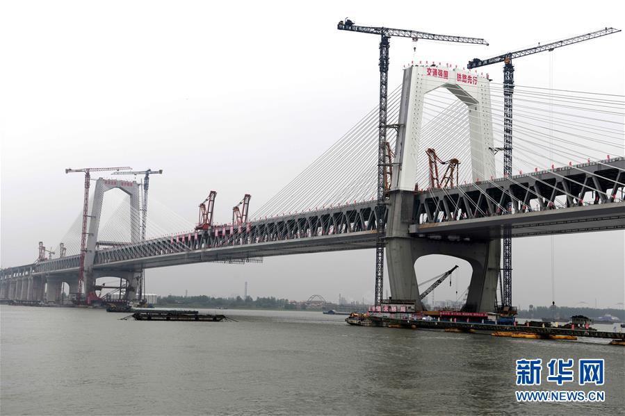 商合杭铁路芜湖长江公铁大桥合龙现场(4月26日摄)。