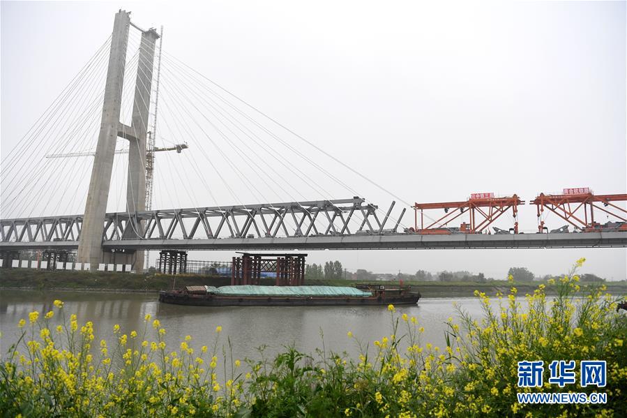 这是合龙后的商合杭铁路裕溪河特大桥(4月22日摄)。新华社记者刘军喜摄
