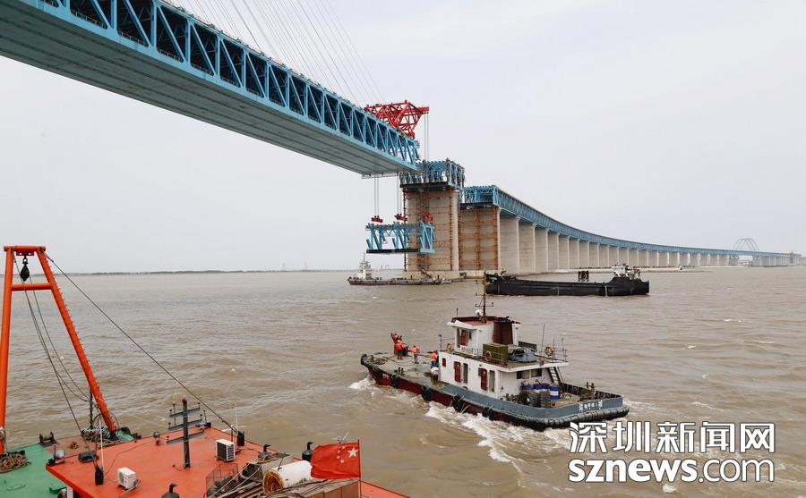 沪通长江大桥主航道桥首个钢梁段即将合龙