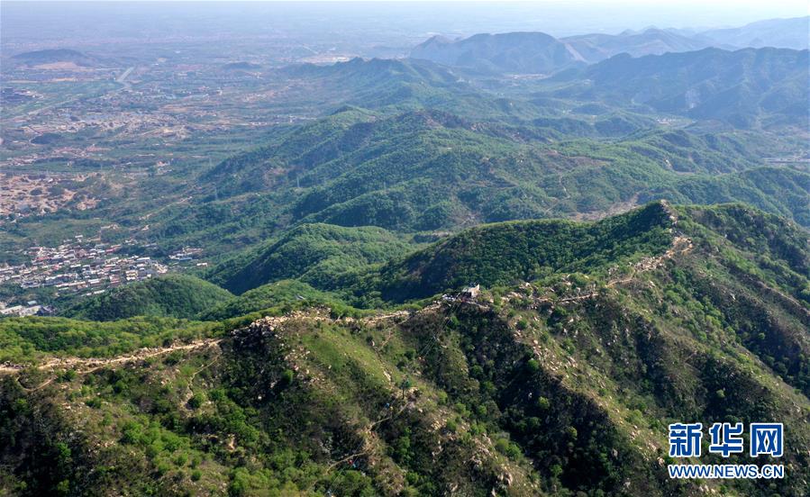 这是5月2日拍摄的盘山风景名胜区内的群山景观(无人机拍摄)。新华社记者 岳月伟 摄