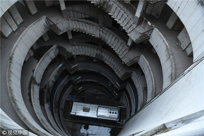 探秘重庆魔幻八层圆筒型转转楼 公交车穿其而过
