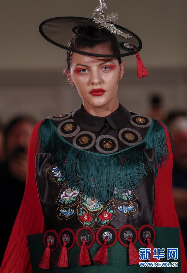 5月8日,一名模特在英国伦敦走秀。 由浙江省文化和旅游厅举办的浙江传统工艺创新展8日在伦敦开幕。为期4天的展览是第五届伦敦手工艺周的重要活动之一。 新华社记者 韩岩 摄