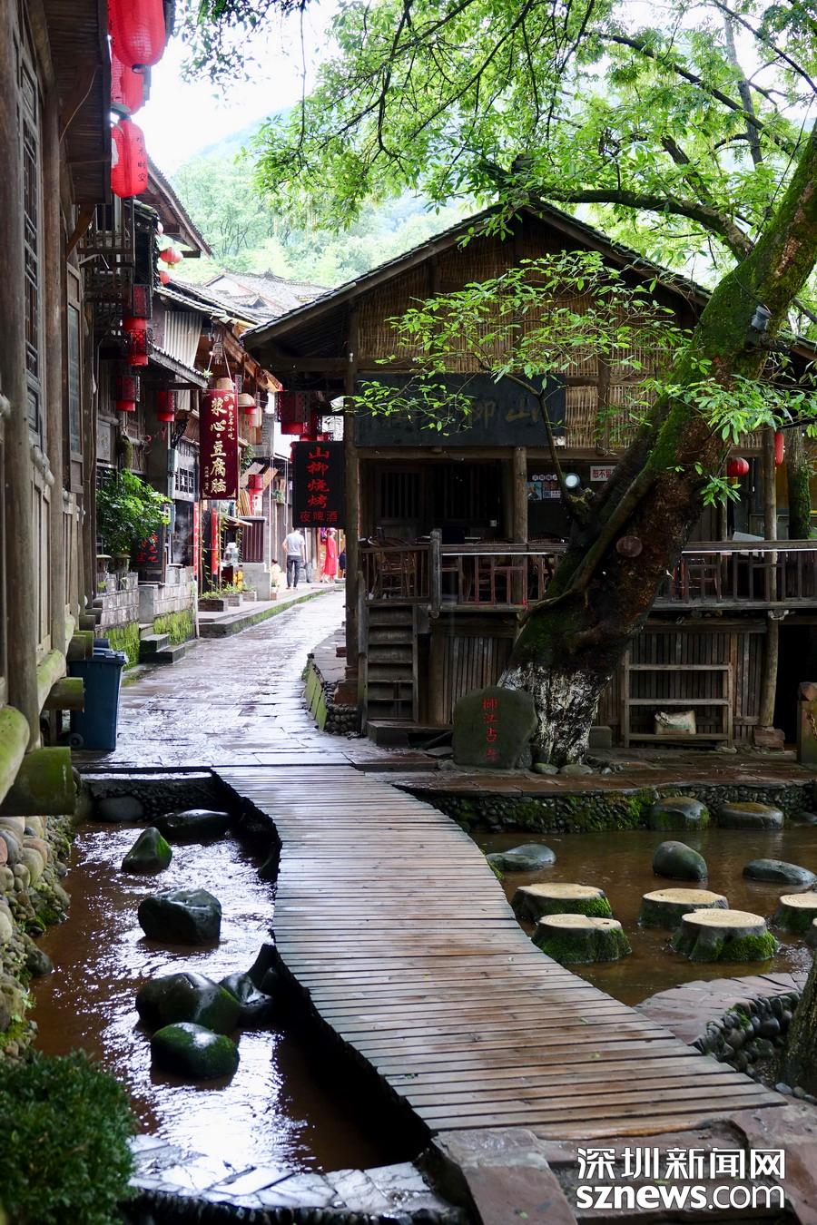 古镇背靠峨眉、瓦屋仙山,杨村河、花溪河拥镇而过。这里有川西风情吊脚楼、访古寻悠水码头、亲水临河古栈道、百年民居汇老街等特色景观。李 仁奇 摄