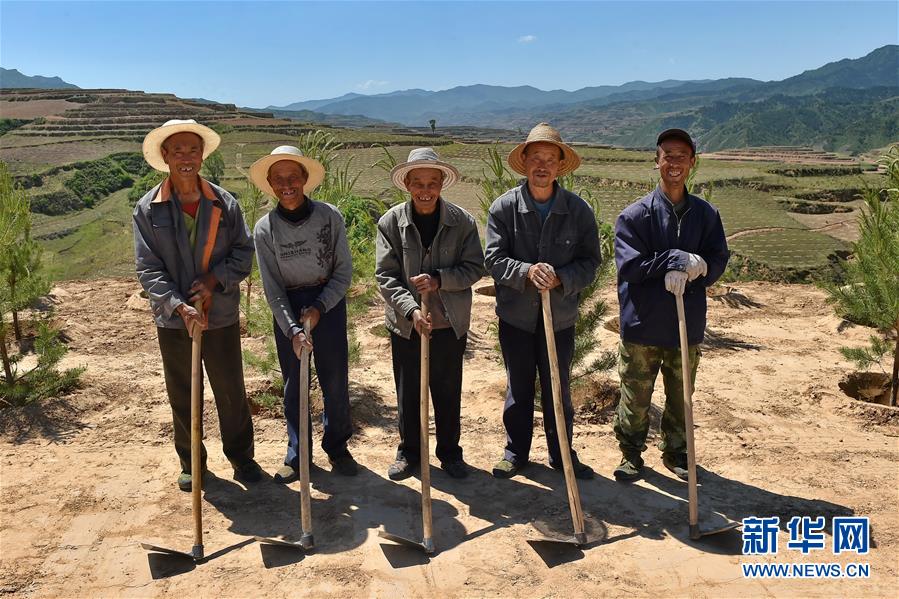 这是2017年5月26日拍摄的在吕梁山上种树的岚县会里村村民。新华社记者 曹阳 摄