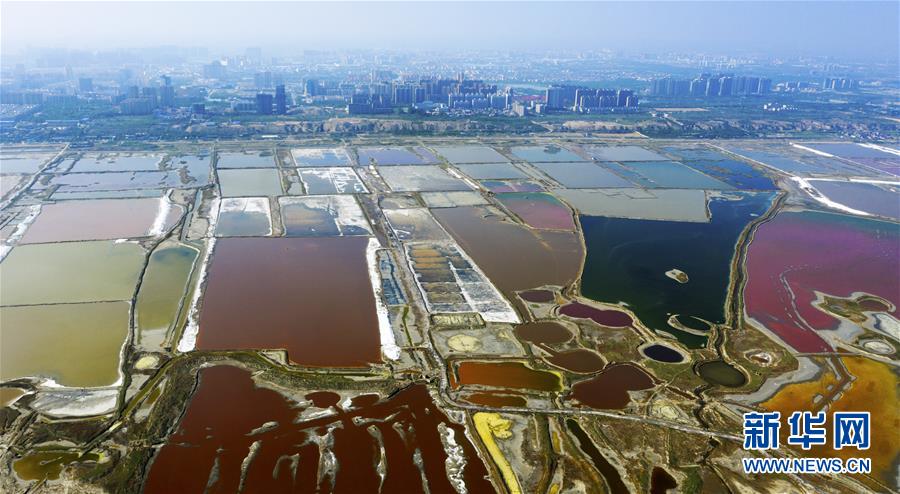 这是4月23日无人机拍摄的山西运城盐湖。新华社记者 曹阳 摄