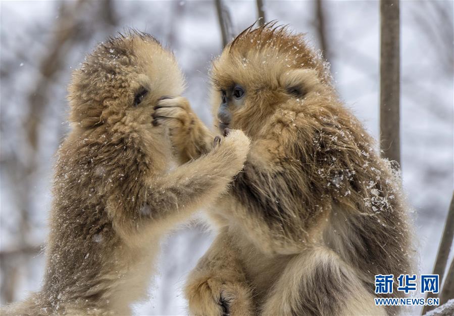 在神农架国家公园大龙潭拍摄的金丝猴(2017年1月10日摄)。 新华社记者 杜华举 摄