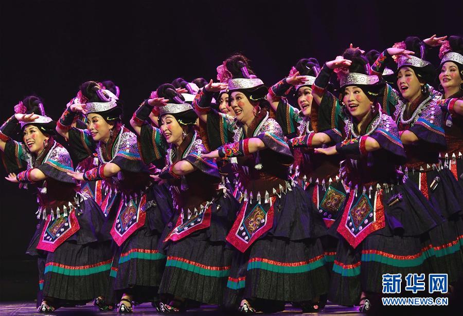 5月16日,在第十八届群星奖决赛舞蹈类作品比赛中,演员在表演《苗家阿婆笑哈哈》。 当日,作为第十二届中国艺术节的重要内容,第十八届群星奖决赛在上海东方艺术中心启动。84个入围决赛作品将按照舞蹈、音乐、戏剧、曲艺4个门类进行7场比赛,最终评出20个获奖作品。 新华社记者 任珑 摄