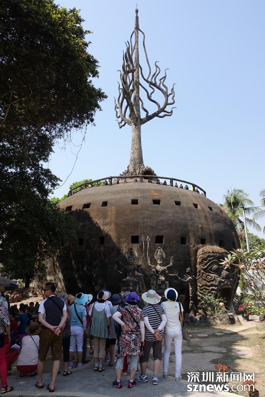 香昆寺实际上是一座佛像公园,位于万象东南约 24 公里处,寺内供奉的各种超凡脱俗的佛像和印度教雕像大多取材于宗教故事。圆形尖塔、塔顶有一座金佛坐镇的诡异建筑寓意着地狱、人间和天堂。 李仁奇 摄