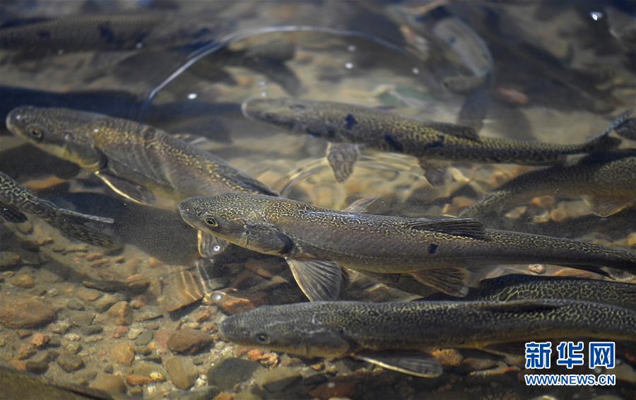 这是年保玉则湖泊中的裸鲤(5月21日摄)。 年保玉则位于青海省果洛藏族自治州久治县境内,地处三江源国家公园核心区,主峰海拔5369米。年保玉则周围森林茂密,湖泊星罗棋布,栖息着裸鲤、岩羊、白唇鹿、棕熊等珍稀动物。 新华社记者 张宏祥 摄