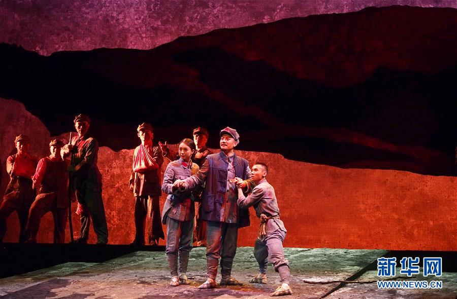 5月27日,演员在上海美琪大戏院表演现代京剧《红军故事》 。 新华社记者 任珑 摄
